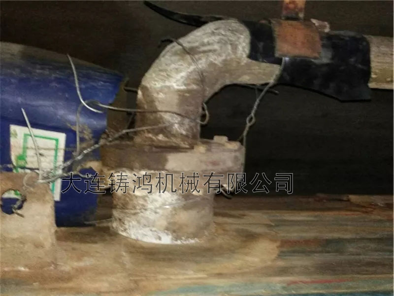 近日,山西孝義化工廠發(fā)生管道泄漏,經(jīng)過現(xiàn)場工作人員的精心排查,最后在一個角落發(fā)現(xiàn)靠近地面的鑄鐵大小頭法蘭發(fā)生泄露,管的表面腐蝕較為嚴(yán)重,現(xiàn)場管道壓力為3公斤,介質(zhì)為漿液,大頭直管外徑為223mm,小頭外徑為145mm,法蘭根部泄露。