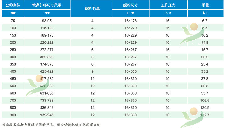 *適用于公稱直徑《945mm的幾乎所有等級和品牌的鑄鐵管、球墨鑄鐵管道
