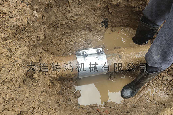 湖北省隨州市,隨州自來水公司,dn150鋼管供水管發(fā)生泄露,挖開后漏點(diǎn)在下面,壓力4公斤左右。沒有任何安裝經(jīng)驗(yàn)的師傅,現(xiàn)場(chǎng)指導(dǎo)半分鐘,實(shí)際操作兩分鐘完成封堵。
