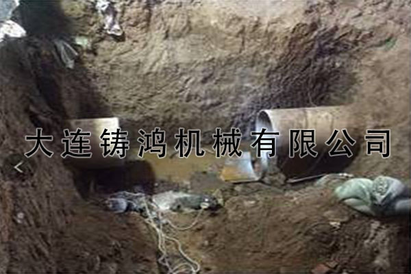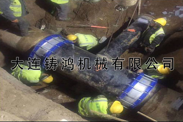 現(xiàn)場工況 : 玻璃鋼管和鑄鐵管進(jìn)行連接,管徑DN800,切掉一段管,再重新接一段鐵管分流,由于兩端管徑有差異,使用“鑄鴻”柔性管道連接器進(jìn)行連接,柔性管道連接器兩管最大容差可24mm。